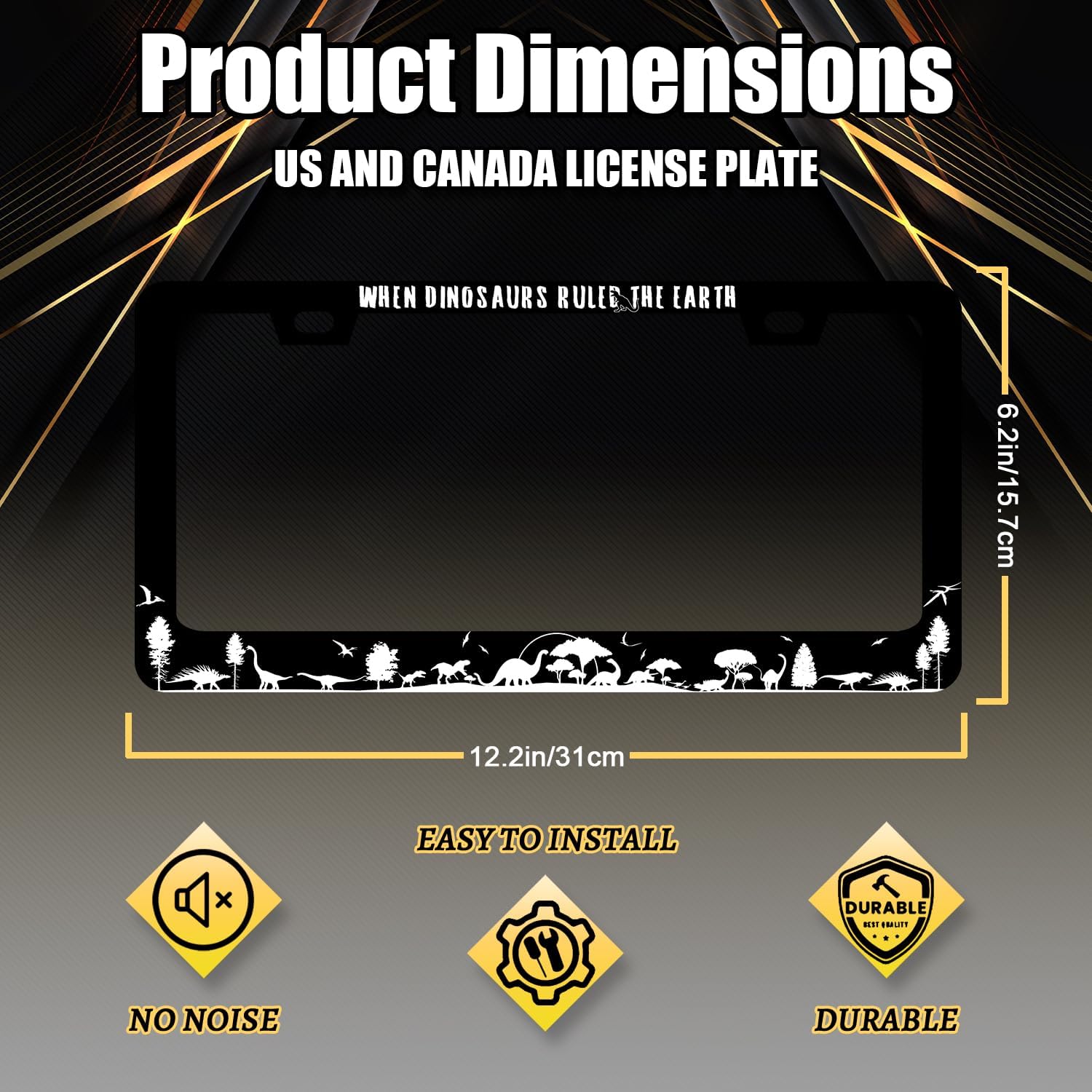 When Dinosaurs Ruled The Earth License Plate Frame Funny License Plate Stainless Steel Black Accessories Cars Decor 12.2 X 6.2 Inch with 2 Holes and Screws Fits Standard Us Ca Vehicles