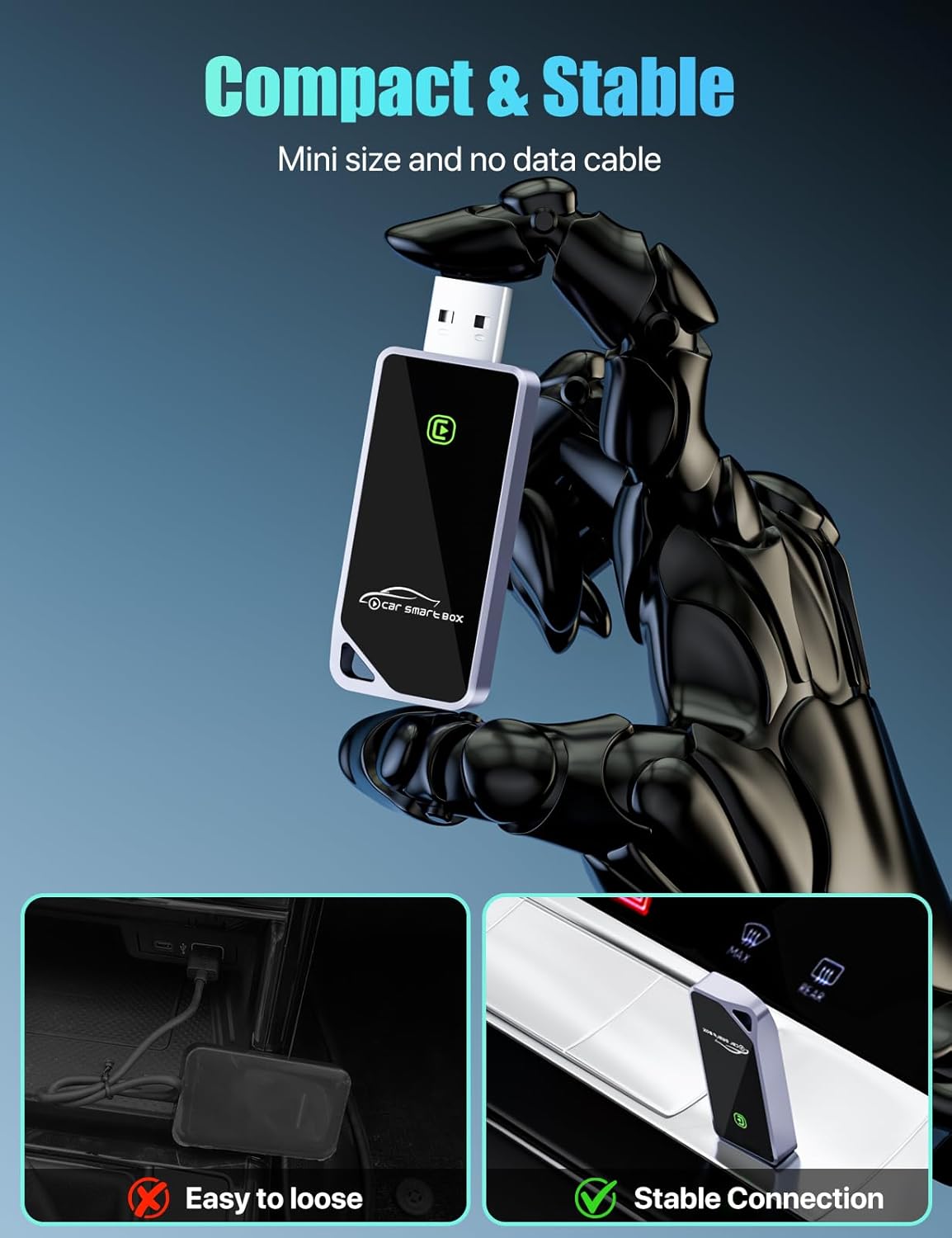 - 【OTA Updates & Efficient Cooling】Stay compatible with OTA firmware updates for the latest iOS and car models. The adapter’s lightweight aluminum casing ensures superior heat dissipation, preventing overheating during long drives to maintain consistent performance.
