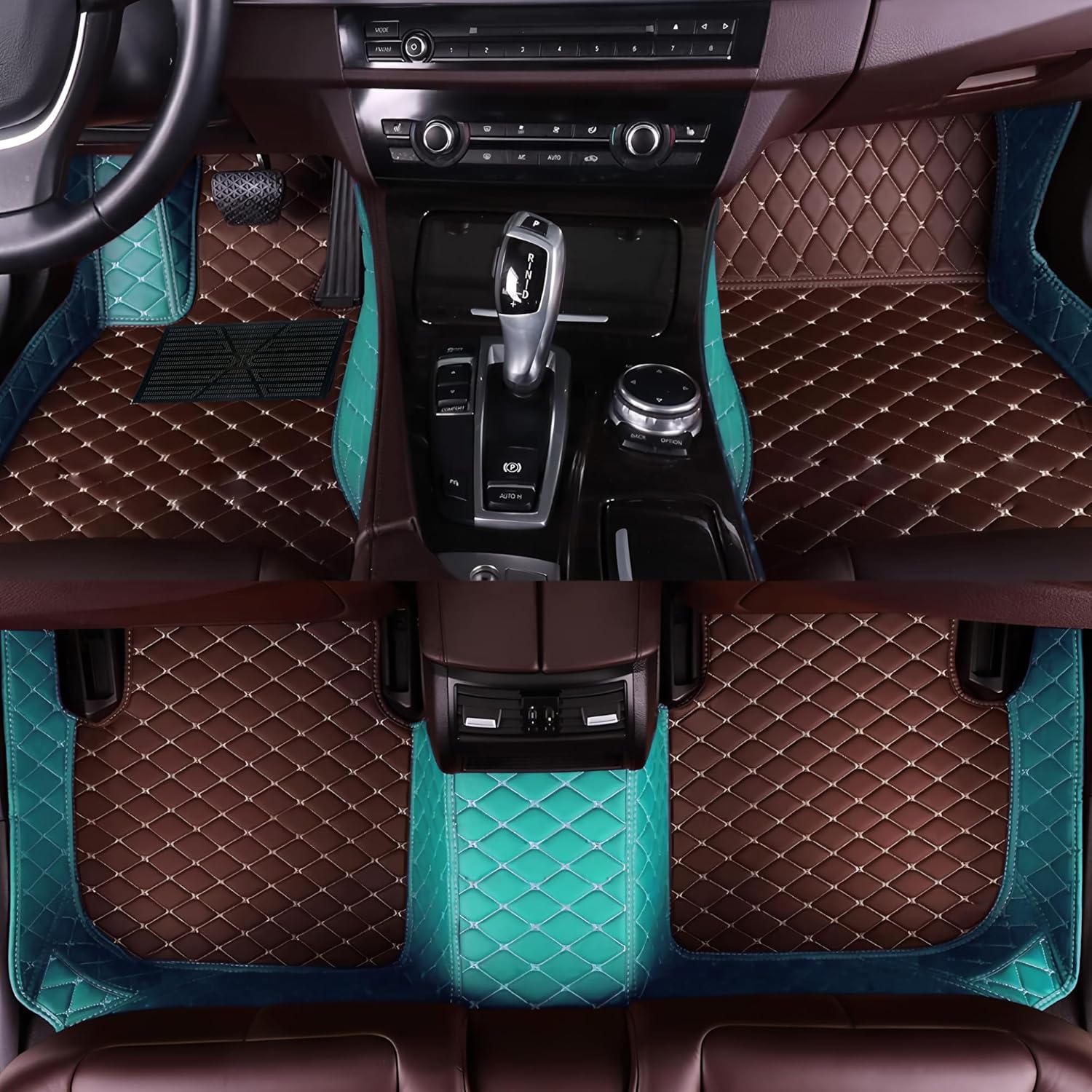 Custom Personalized Floor Mats for Cars,Luxury Full Coverage All Car Floor Mats,Anti-Slip Leather Car Mat Set ,Custom Floor Mats for 99% of Cars, Trucks & SUVs. (Sky Blue and Brown)