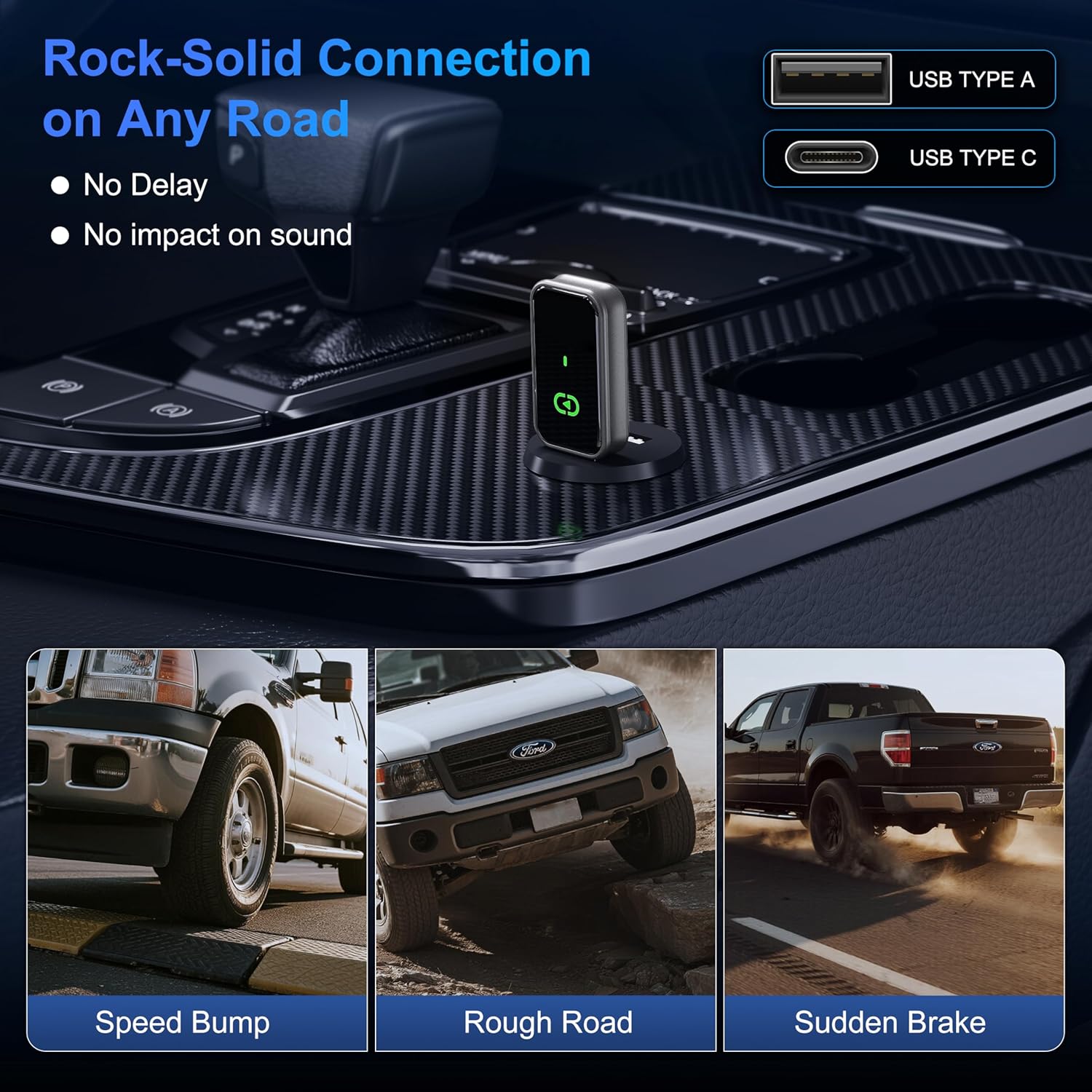 - 1. Fast & Stable Wireless Connection: Experience instant connectivity with this wireless USB adapter for car, featuring advanced 2.4GHz Bluetooth and dual-band Wi-Fi (2.4/5.8GHz) technology. Achieves first-time setup in 6 seconds and automatic reconnection within 3 seconds after ignition. No lagging during calls or navigation. Perfect CarPlay wireless adapter for Toyota, for Honda, for Ford, and other 2016+ vehicles with wired CarPlay support.