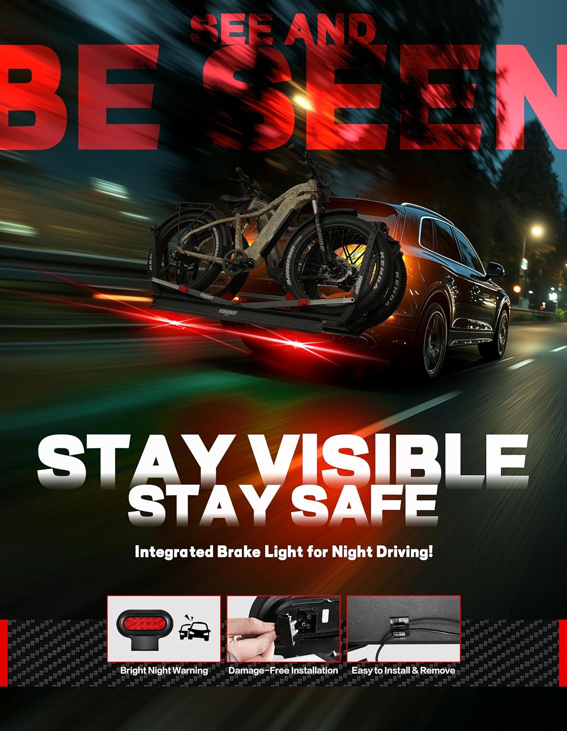 - Perfect Fit for Young Bike RacksïŒNo Guesswork Needed Engineered exclusively for Young racks, this light snaps on in seconds. The low-profile design blends seamlessly with your rackâs frame, while the heavy-duty clamp locks securelyâno shaking loose, even on rough terrain.