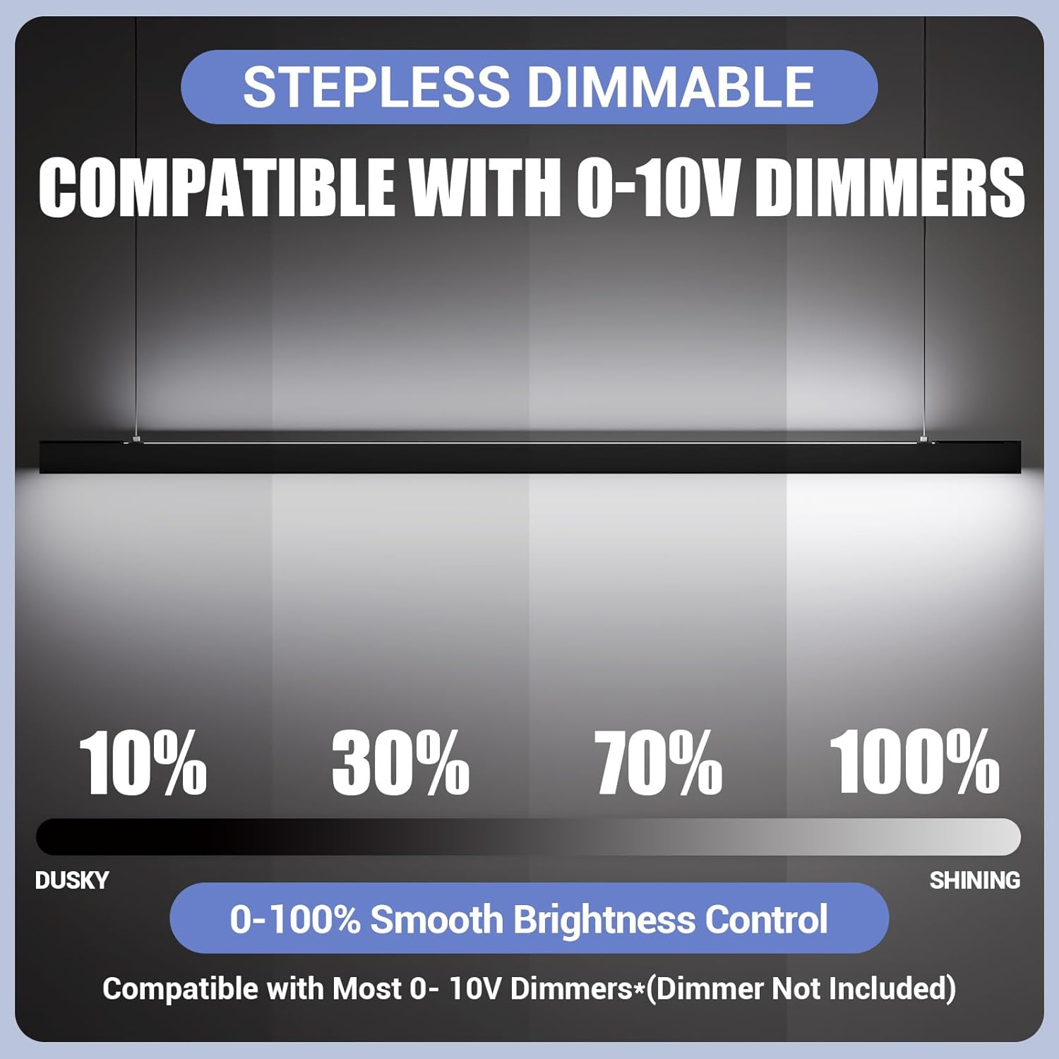 - LINKABLE AND 3000/4000/5000K 3CCT: The suspension linkable led lights can stand individually or in Seamless continuous runs with up to 6 lights, providing clean architectural lighting for your building. Compatible with 0-10V dimmer (not included) to control brightness from 0%-100% without flickering and buzzing.