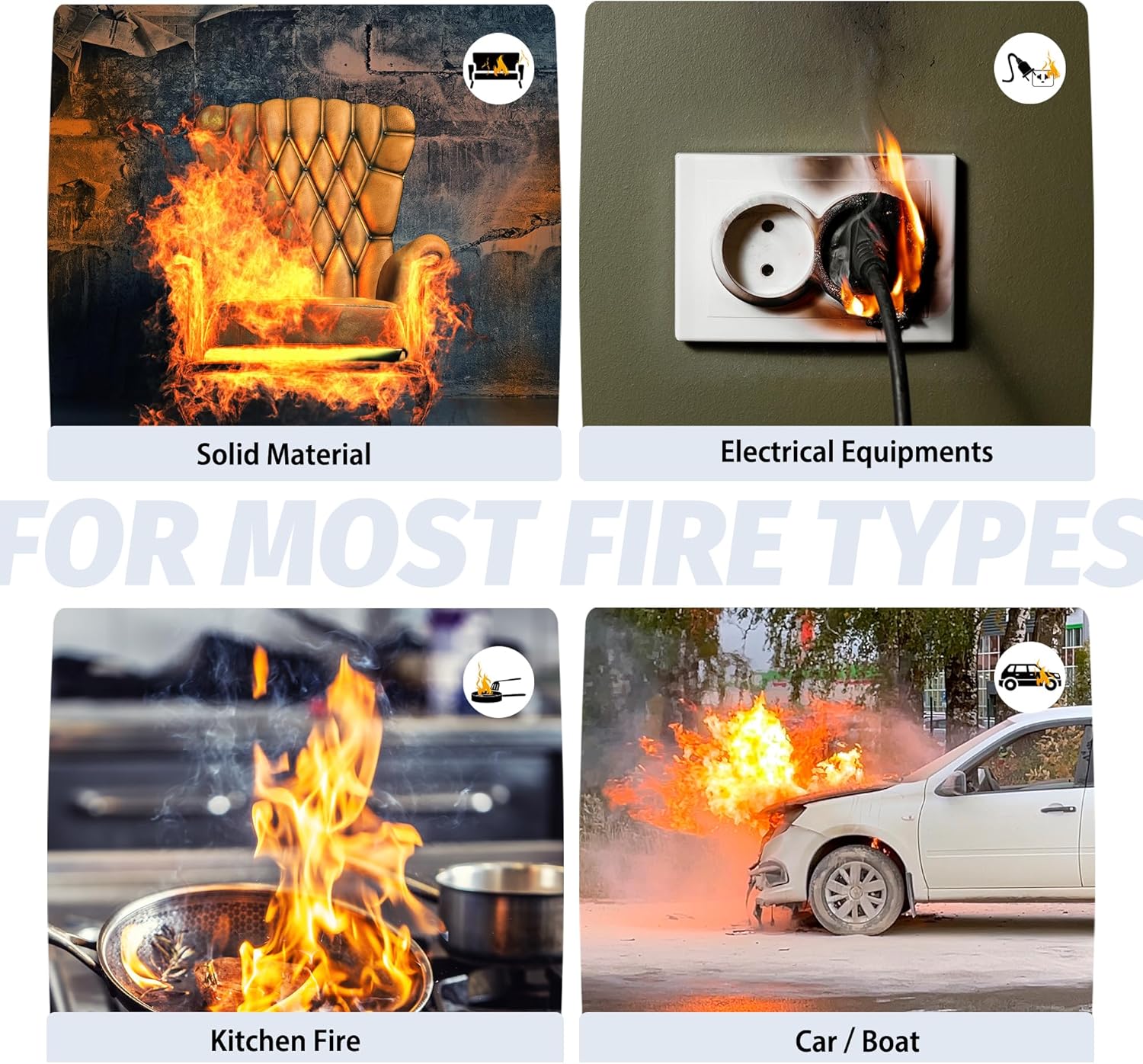 - Versatile Fire Safety Solution: This compact, easy-to-store extinguisher tackles Class A, B, C, and K fires—including grease, electrical, paper, and flammable liquid fires. Perfect for kitchens, emergency kits, garages, cars, RVs, and small businesses