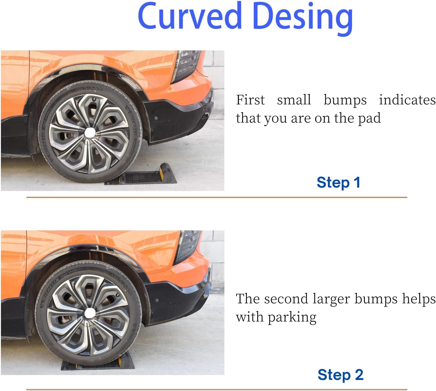 - Unique Design:Our parking stopper for garage provides two tire bumps for the driver to facilitate parking - The first small bumps indicates that you are on the pad, while the second larger bumps helps with parking.