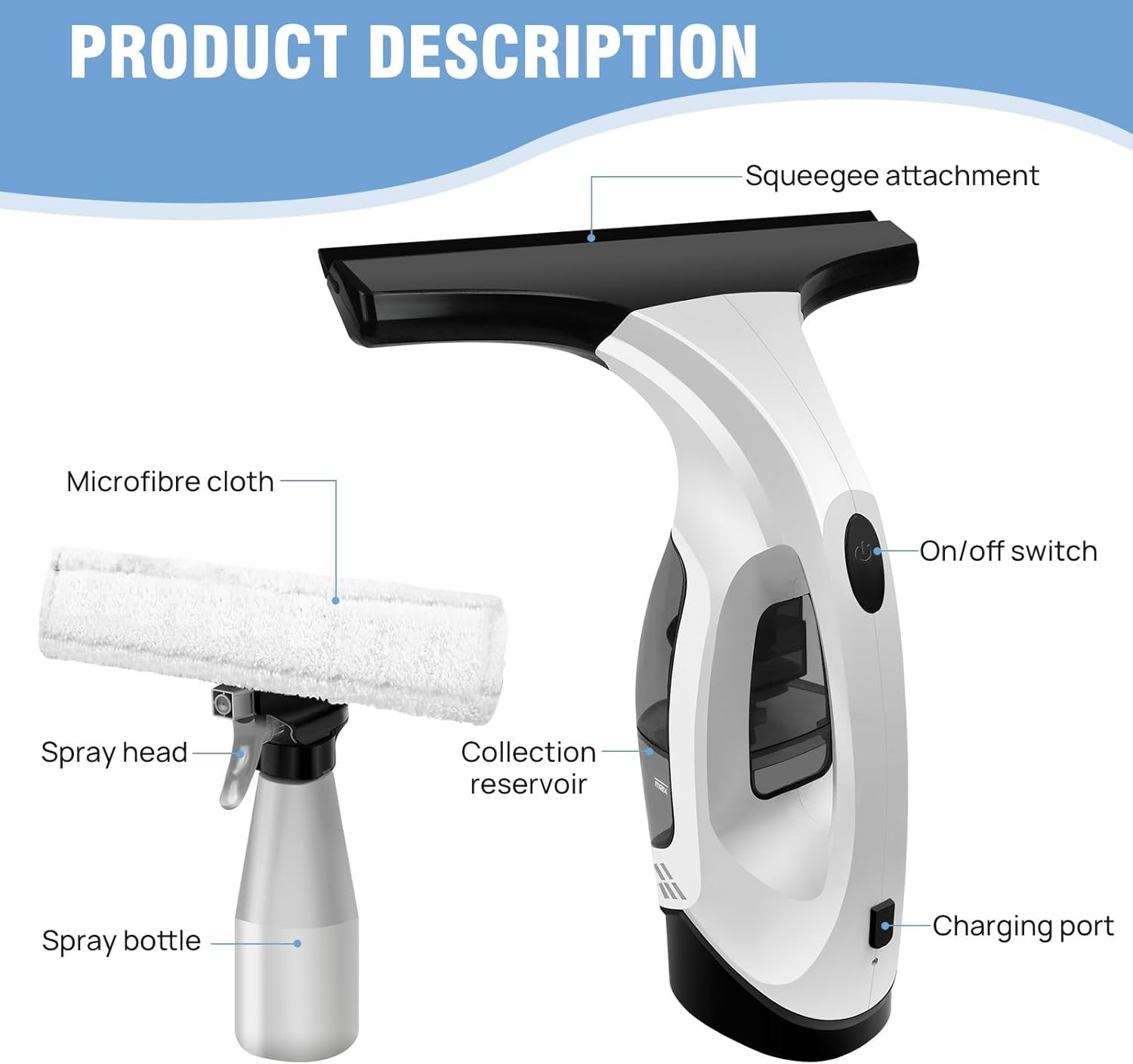 - **Multi-Function Spray Bottle**: Equipped with a multi-function spray bottle, this Handheld Glass Vacuum Cleaner allows you to easily apply cleaning solutions directly onto surfaces before vacuuming, enhancing the overall cleaning process.