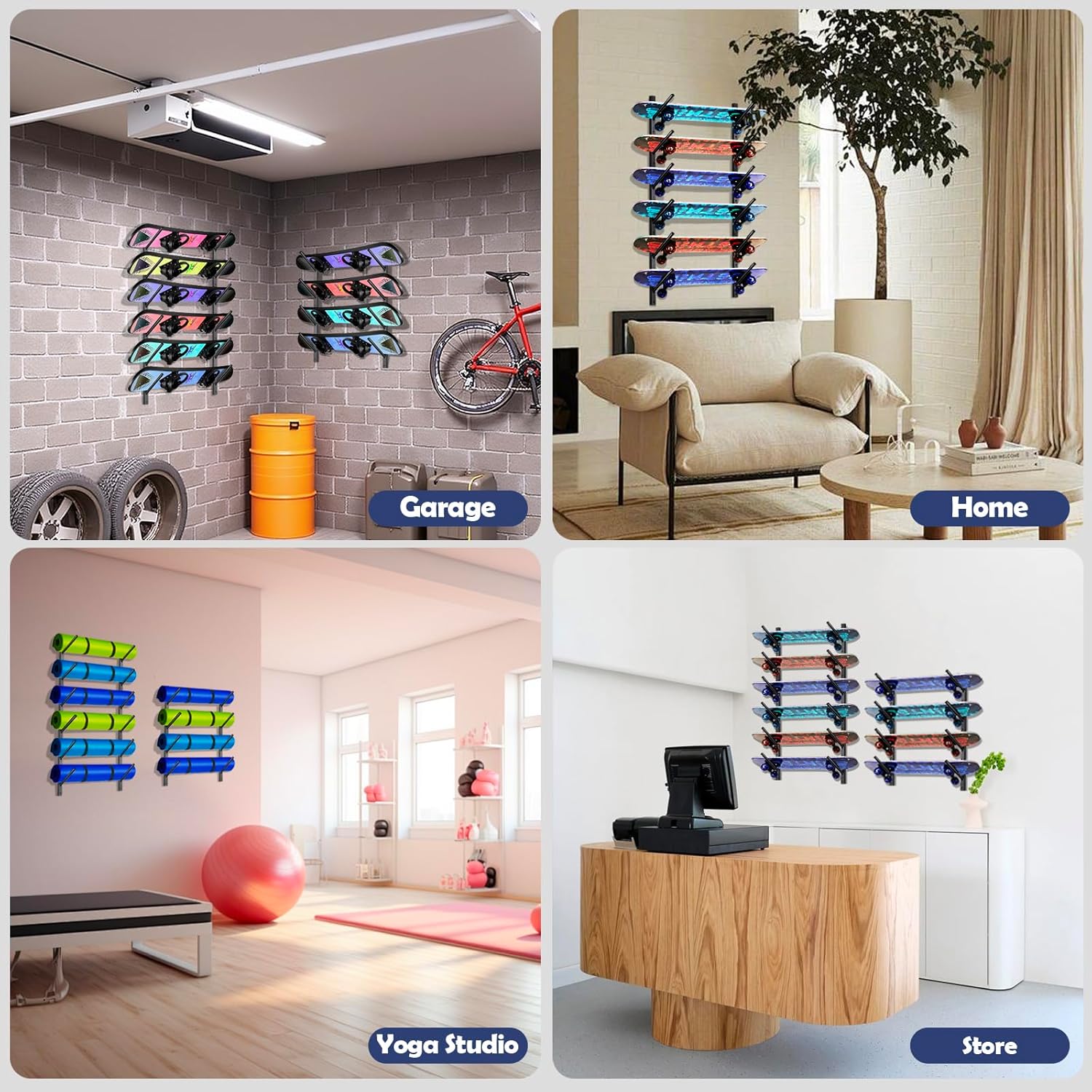 - [Appearance Design]: 3 sets of skateboard racks form a 6-layer rack, holding multiple skateboards neatly. Detachable and combinable, it has both storage and display functions.