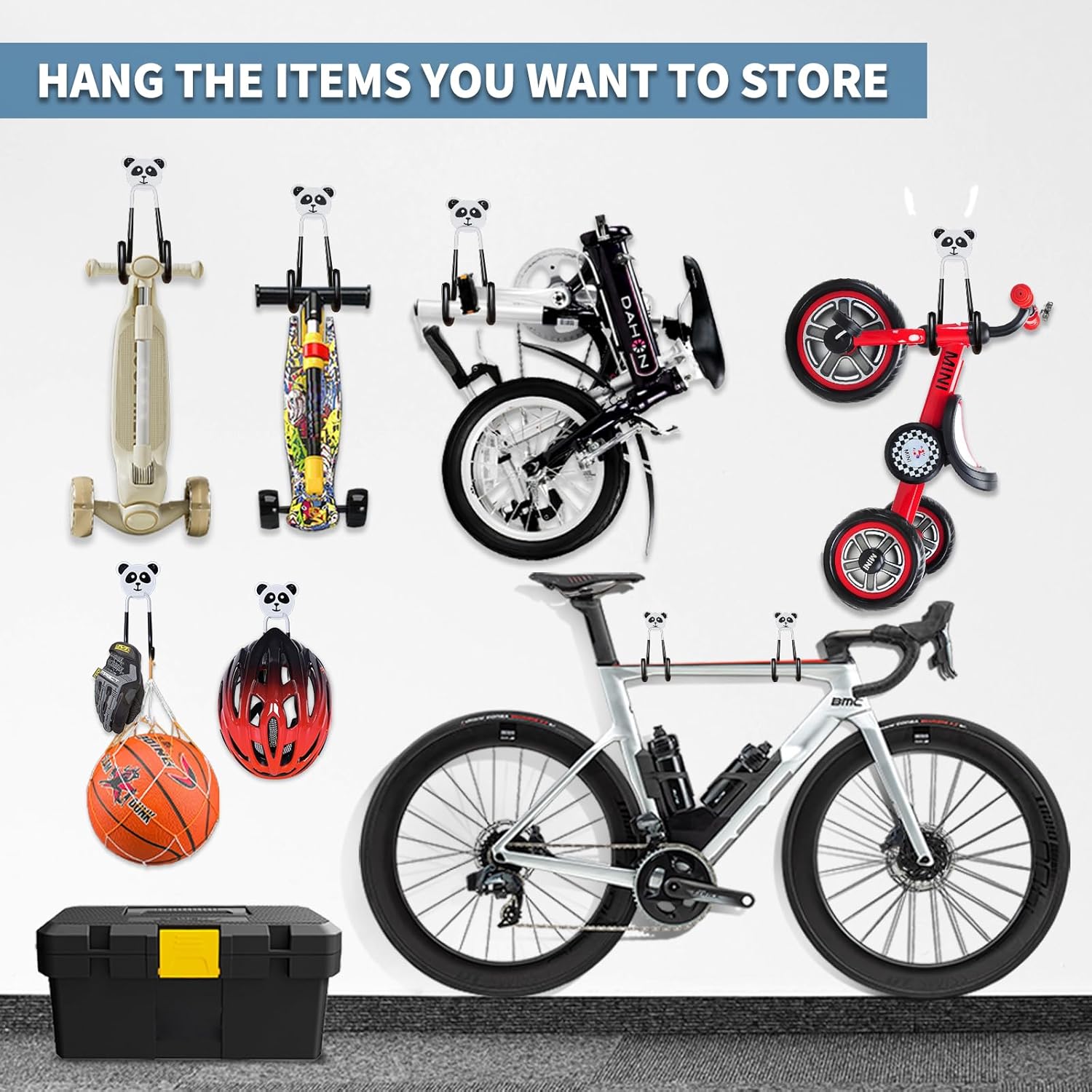 - MULTI-SIZE COMBOTION:8 dual hooks in 4 sizes (8.66", 5.9", 4.72" and 3.54") for various storage needs, two for each size.Perfect heavy duty garage wall hooks to keep everything organized and clear at a glance.