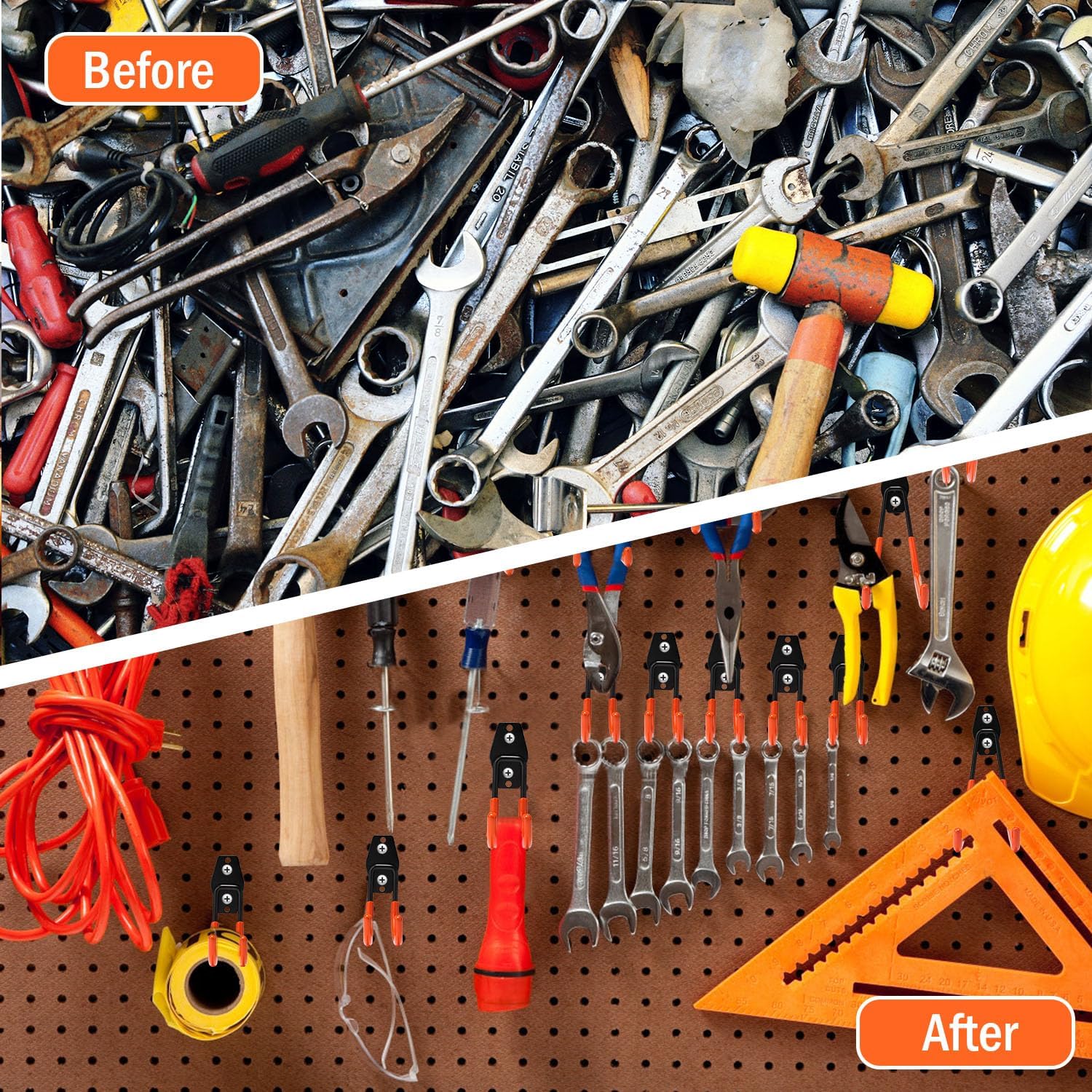 - 🔥✔️ Versatile 10-Piece Set in Multiple Sizes Includes 10 hooks in 5 shapes for a wide variety of storage uses—from shovels to cords. Juego de 10 piezas en 5 tamaños diferentes para todo tipo de objetos: desde palas hasta cables.