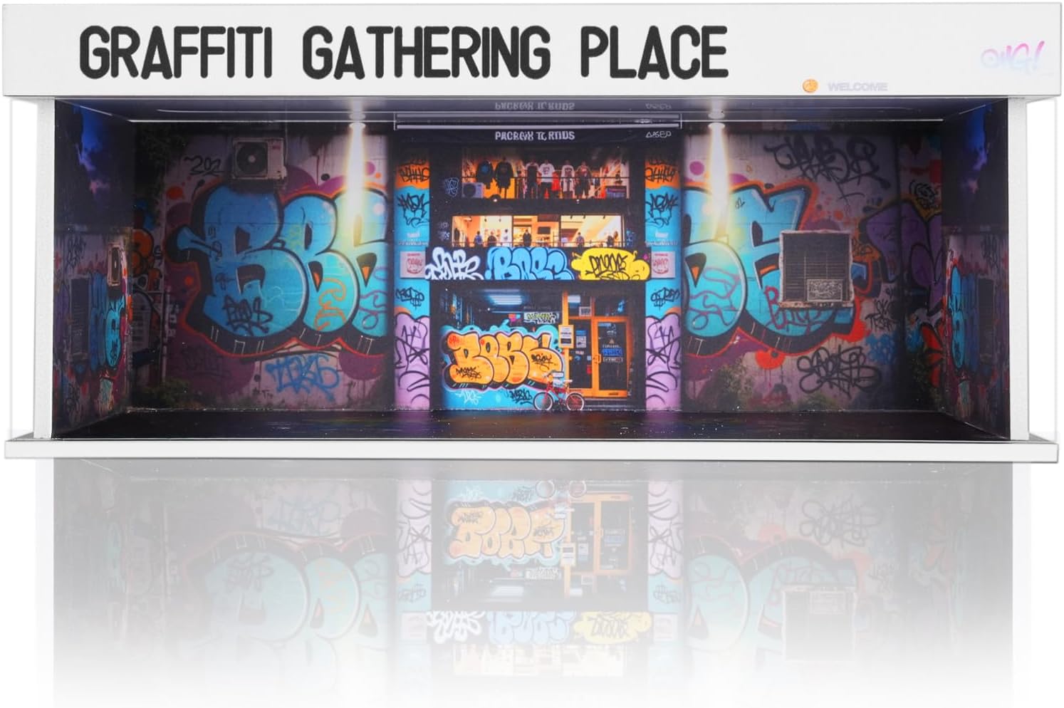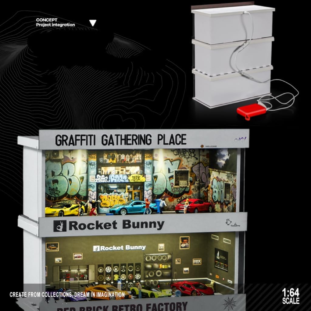 Display Case for Hot Wheels: Stackable Parking Garage for 1/64 Scale Matchbox Toy Car, FoamBoard Storage for Monster Trucks with LED Light and Acrylic Cover, 2025 Upgraded Graffiti Wall
