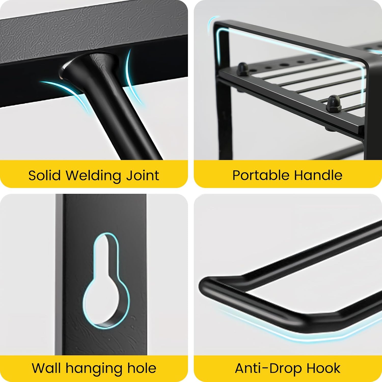 - [Heavy Duty & Durable] - Made of heavy-duty steel with a strong powder coating, this power tool organizer is robust, rust-resistant, and non-fading for long-time use. The storage rack's joint has a reinforced design for heavy-duty strength and even weight distribution, so there is no need to worry about bending or breaking.