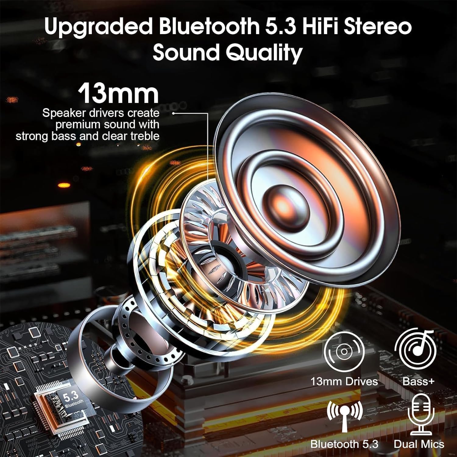 - Bluetooth 5.3 and Fast Pairing: The wireless headset are equipped with a Bluetooth 5.3 chip. Compared with Bluetooth 5.2, it not only provides a faster and more stable connection, but also maximizes low power consumption. Whether you're on a high-speed train or in a noisy airport lobby, you'll be guaranteed a smooth call and music experience. When you take the wireless earpiece out of the charging box, it will automatically turn on and activate the search and connection functions of your phone.