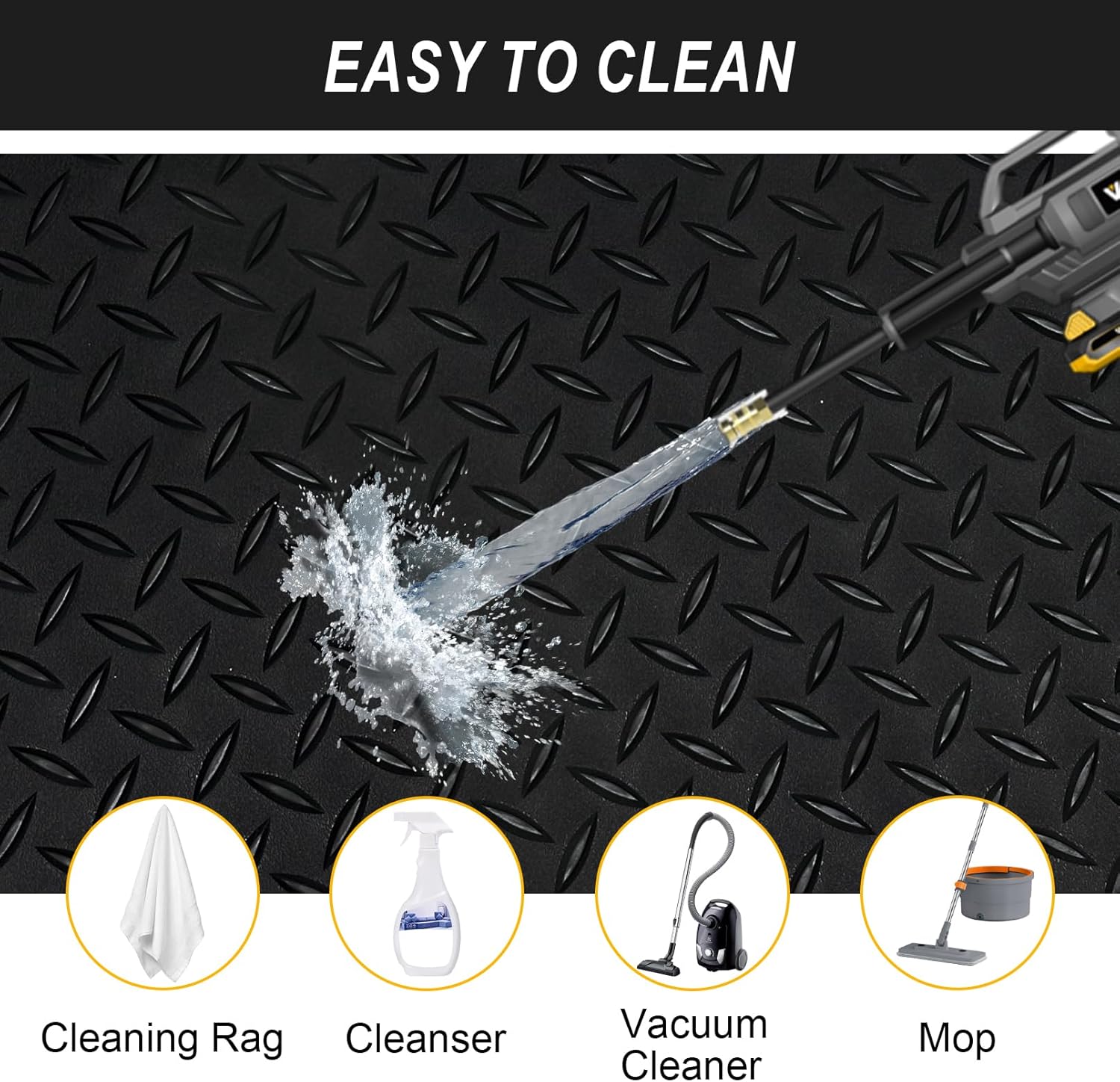 - Premium PVC Rubber Material: Our Garage Floor Mat crafted from high-quality PVC rubber, ensuring durability and resistance to wear. The material is not only non-slip but also provides excellent protection against daily wear and tear.Low temperature will affect the paving of the floor mat, recommended for indoor use.Tips:If there is a slight bulge, it is recommended to place at room temperature for a few days.