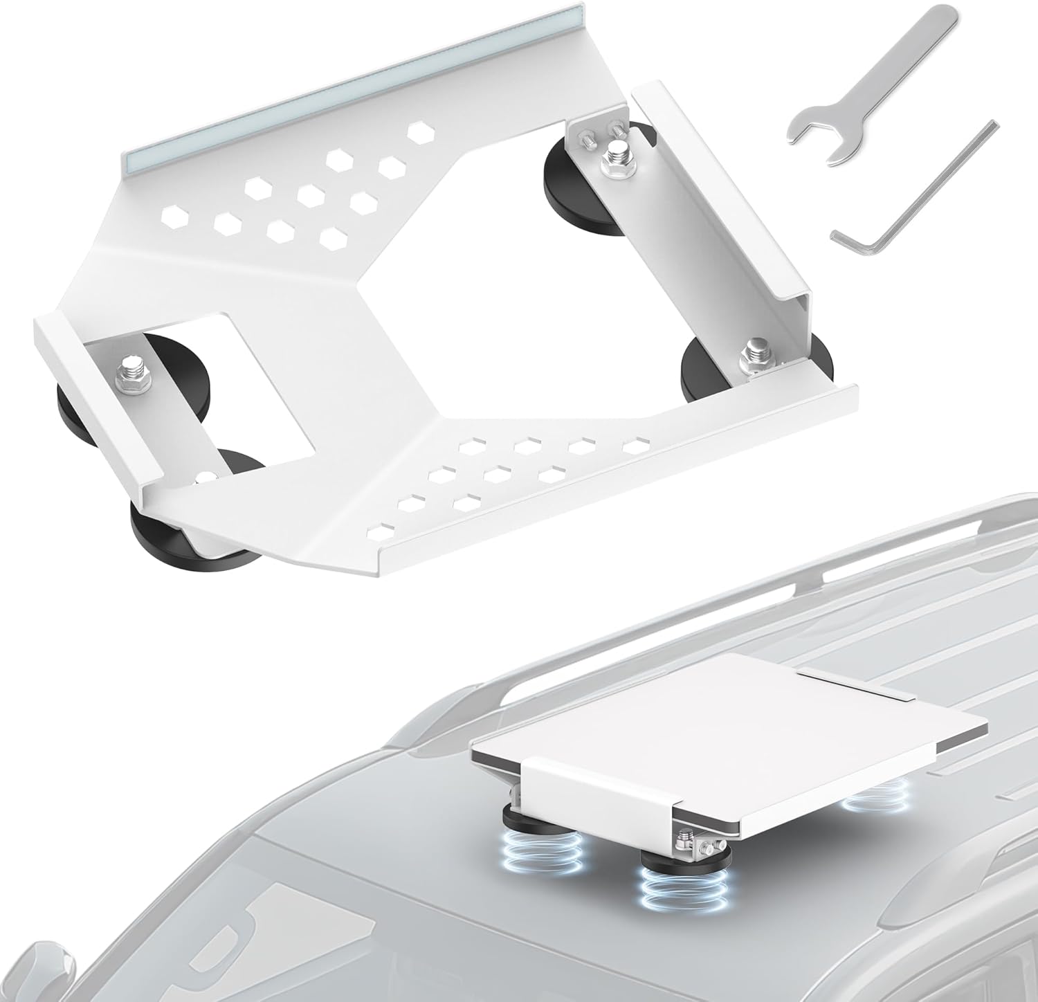 Starlink Mini Car Roof Mount, Starlink Mini Magnetic Mount for Car, 264lbs Heavy Duty Magnet, 4-Side Protection Magnetic Quick Release Sunroof Suction Cup Mounting Kit for Travel RV Accessories White