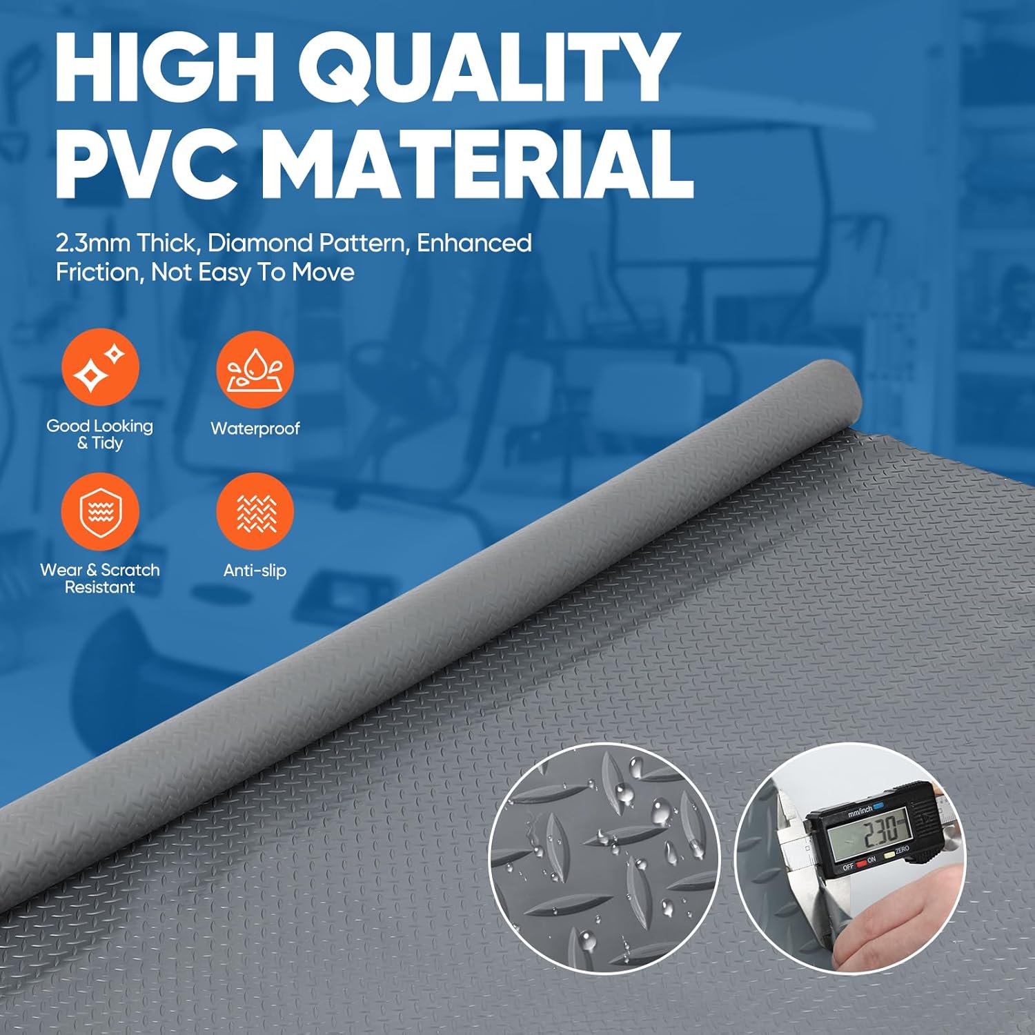 7.5 x 17 FT Garage Floor Mat, Thickened Diamond Plate PVC Garage Parking Mat, Heavy Duty Flooring Roll Mats Waterproof Non-Slip Floor Protector, for Car, Trailer, SUV, Basement, Gym, Shed - Gray