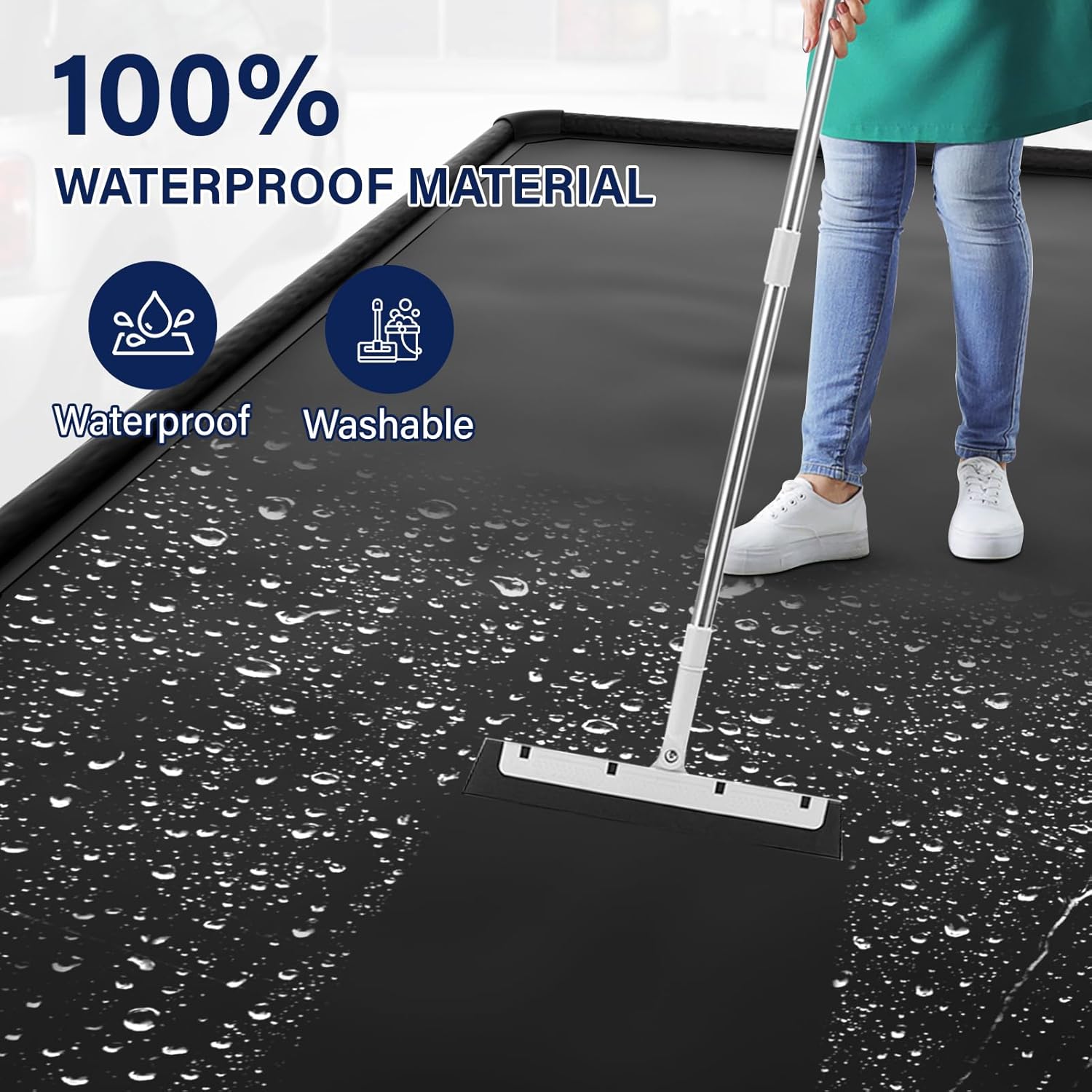- Crafted from thick, heavy-duty PVC, our mat boasts exceptional durability and wear resistance, easily withstanding repeated vehicle traffic. The carefully constructed waterproof seams ensure zero leakage, protecting your floor from any spills. This product is designed for tough conditions and is a reliable choice for long-term use.