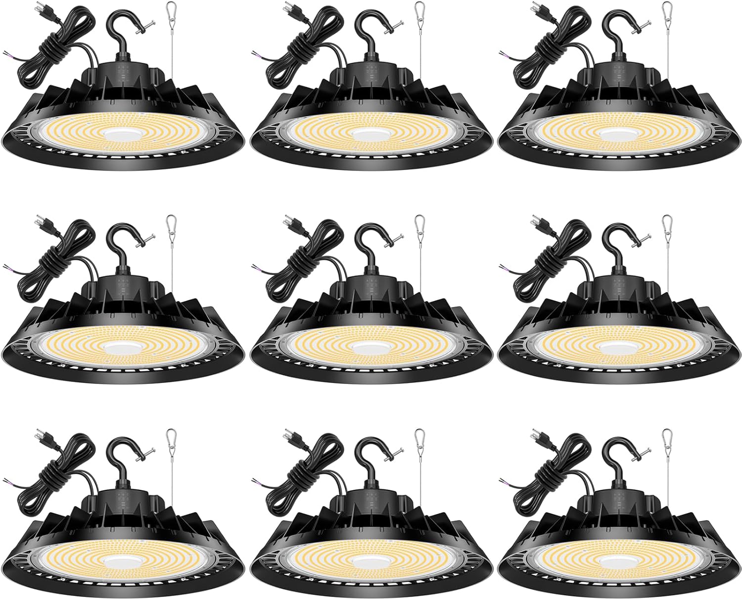 9Pack LED High Bay Lights, Super Bright 200W UFO High Bay LED Shop Lights, 30000LM 5000K, 0-10V Dimmable, 5' Cable Plug, IP65 Waterproof, ETL Listed Plug & Play Lighting for Gym Factory Warehouse
