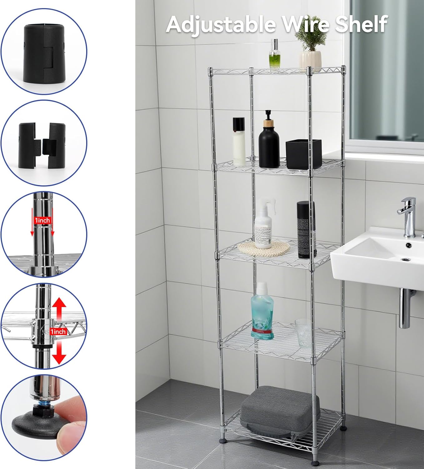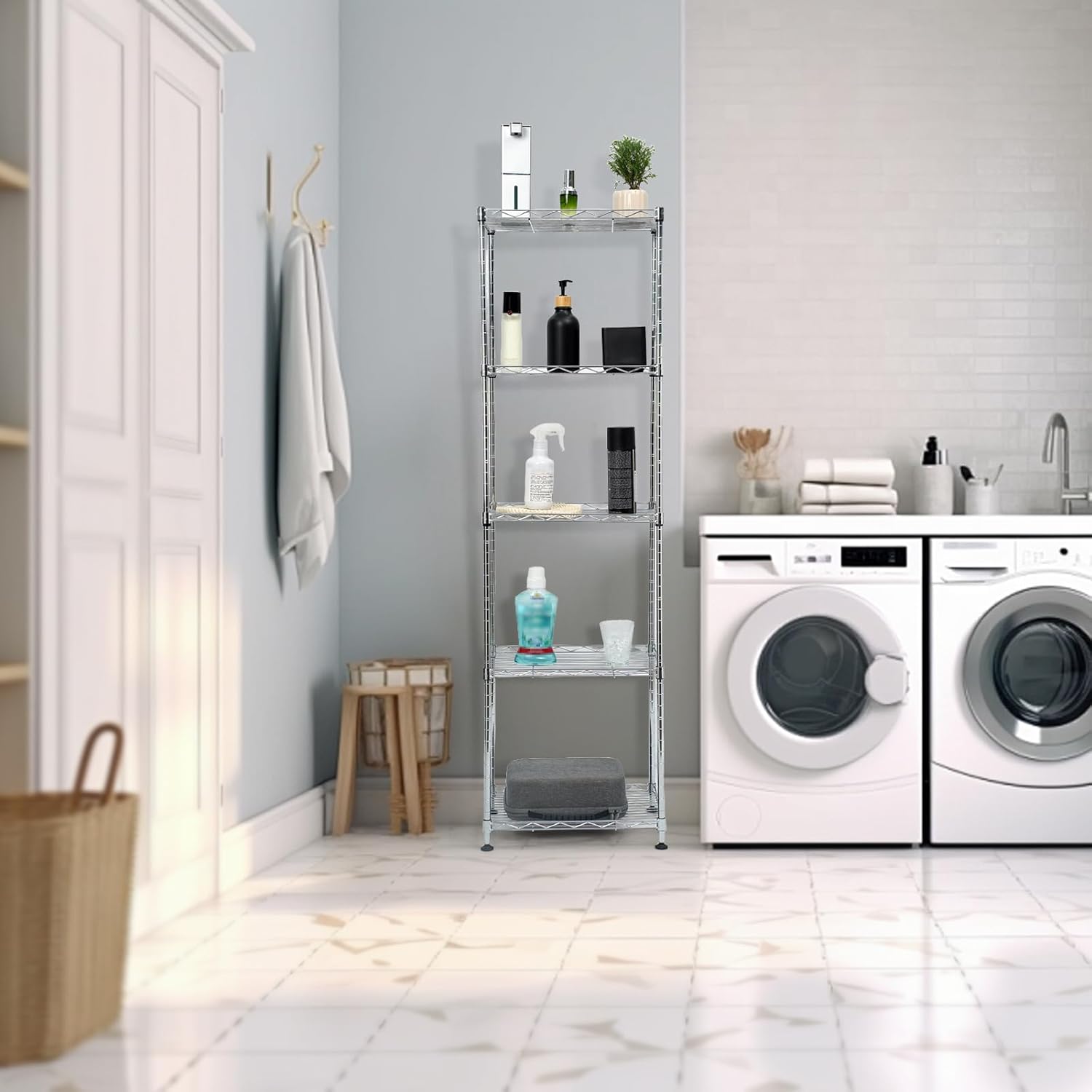Chrome Small 5 Tiers Wire Shelving NSF Certified. Adjustable Storage Rack for Kitchen,Garage,and Laundry Utility Room (Chrome-Small-5Tiers-16x12x55)