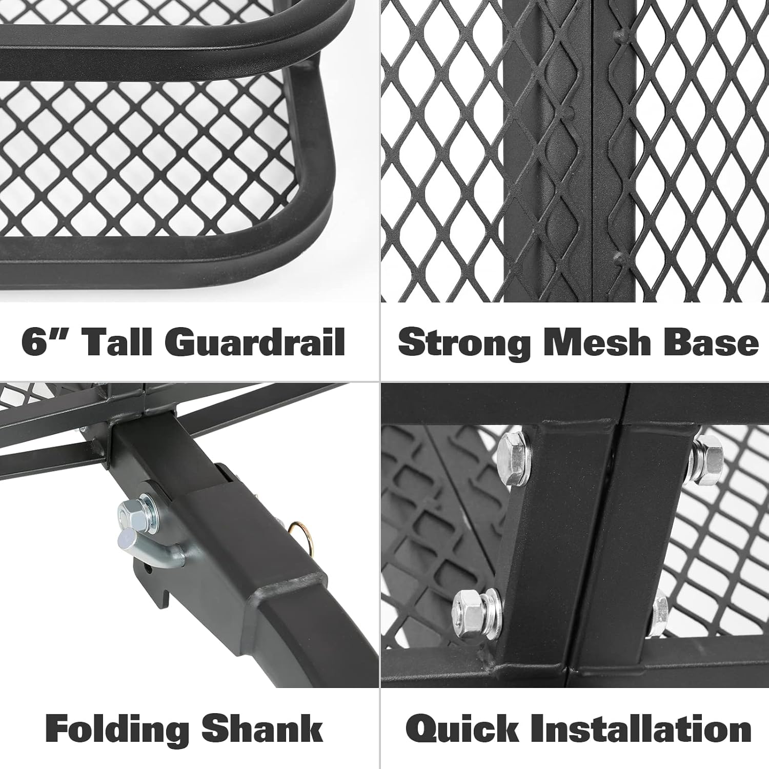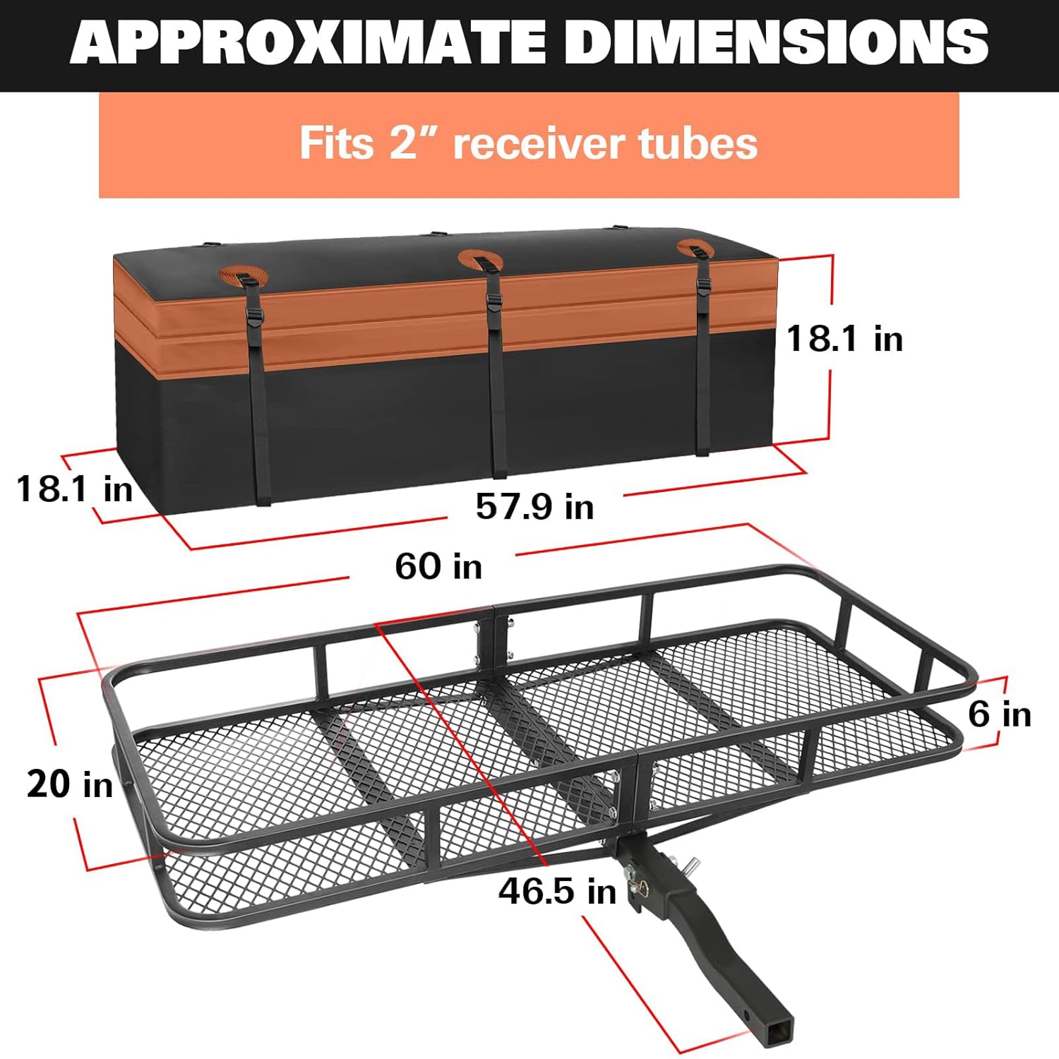 - Overall Dimensions: The hitch cargo carrier measures 60" (L) x 20" (W) x 6" (H), providing plenty of space for your gear. Itโs perfect for camping, road trips, or moving, ensuring you wonโt have to worry about running out of storage space.