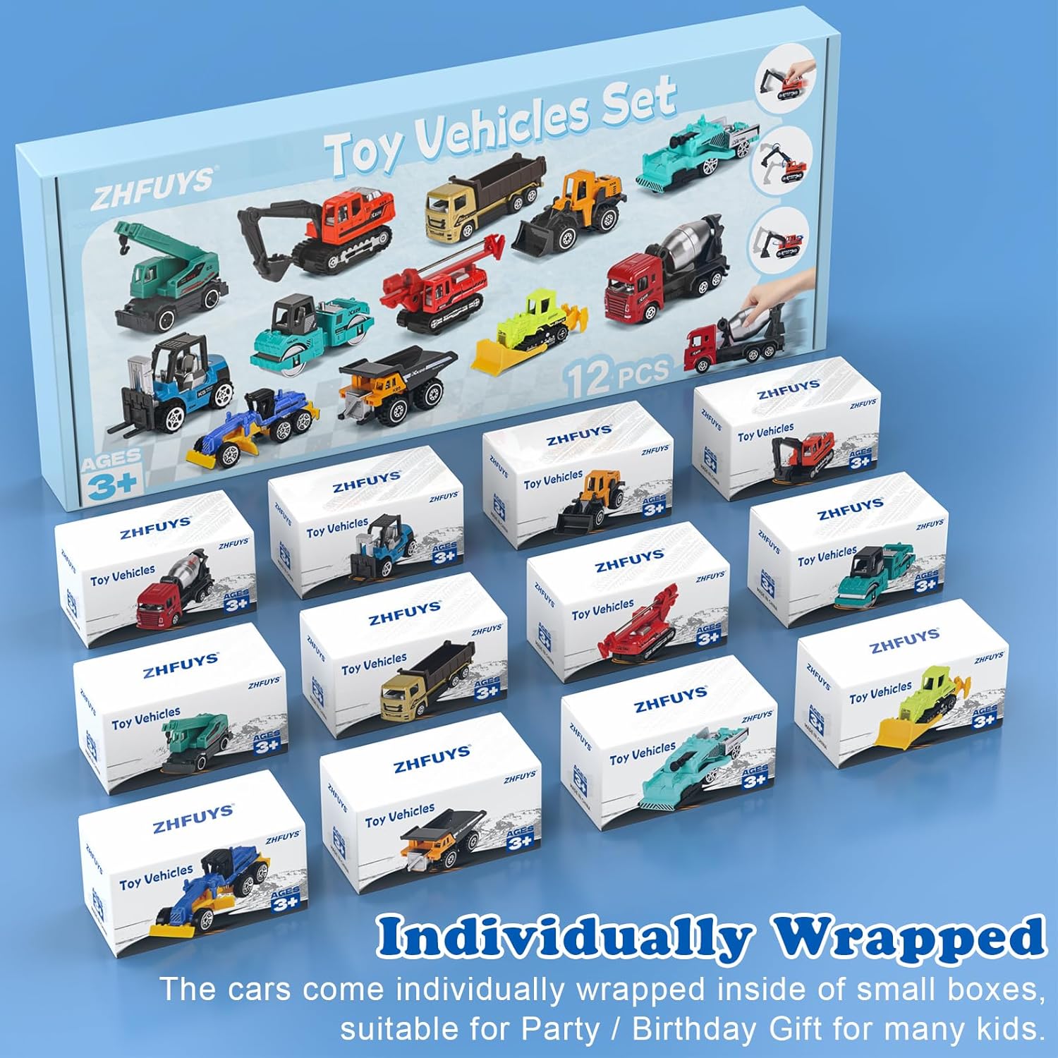 - Individually Wrapped &Rich Unique Design: 12pcs cars are designed in 12 colors, which better meet the visual development needs of young children.The cars come individually wrapped inside of small boxes. The fact that our toy cars are individually wrapped makes them perfect for gifting.